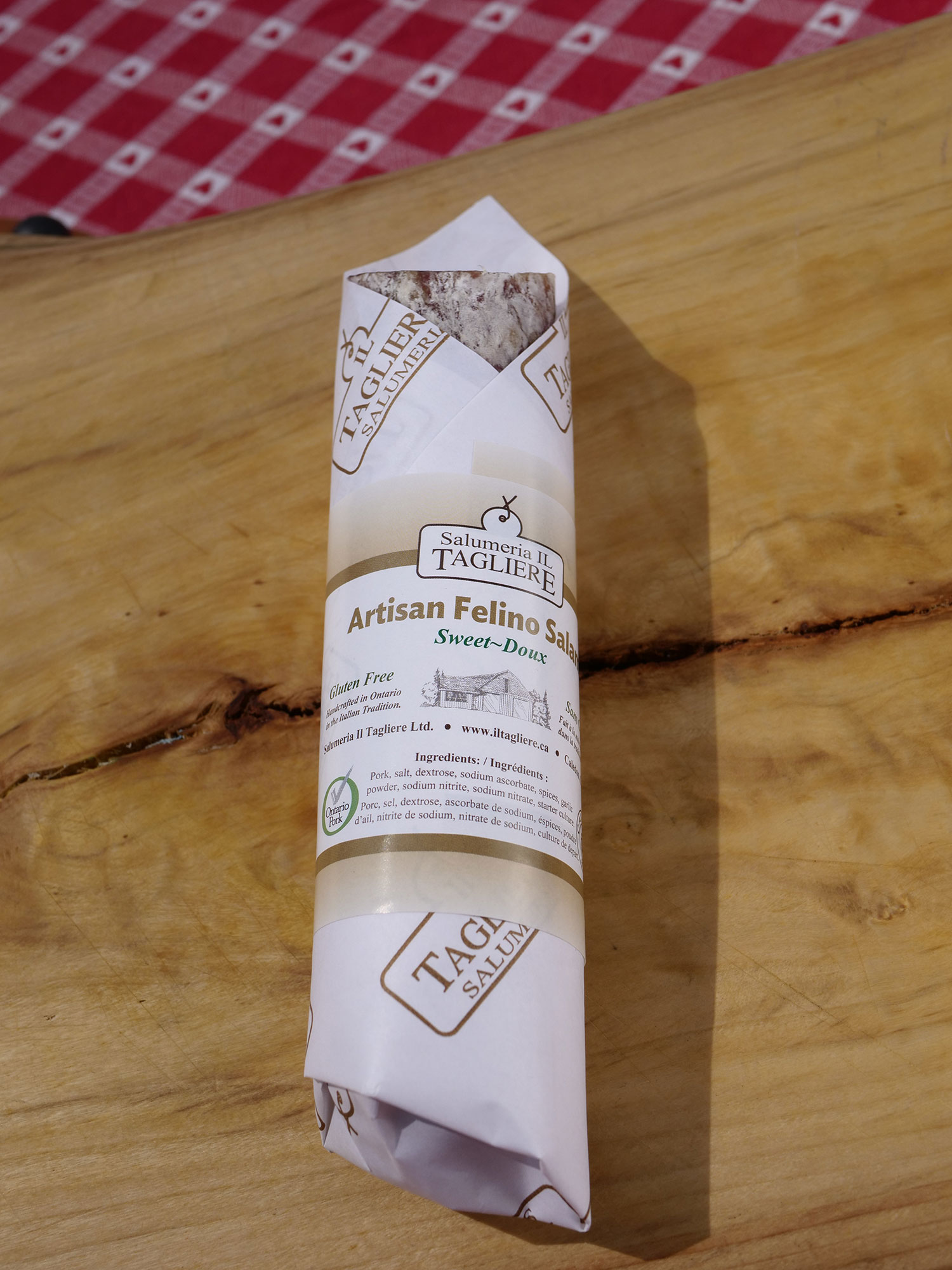 Prepared according to the artisanal recipe of Felino (Parma, Italy) in a natural casing using the highest quality ingredients. Seasoned with sea salt, black pepper and garlic, & garlic. Yields a smooth and subtle flavour. Excellent as an appetizer with a rustic bread, grapes & cheese