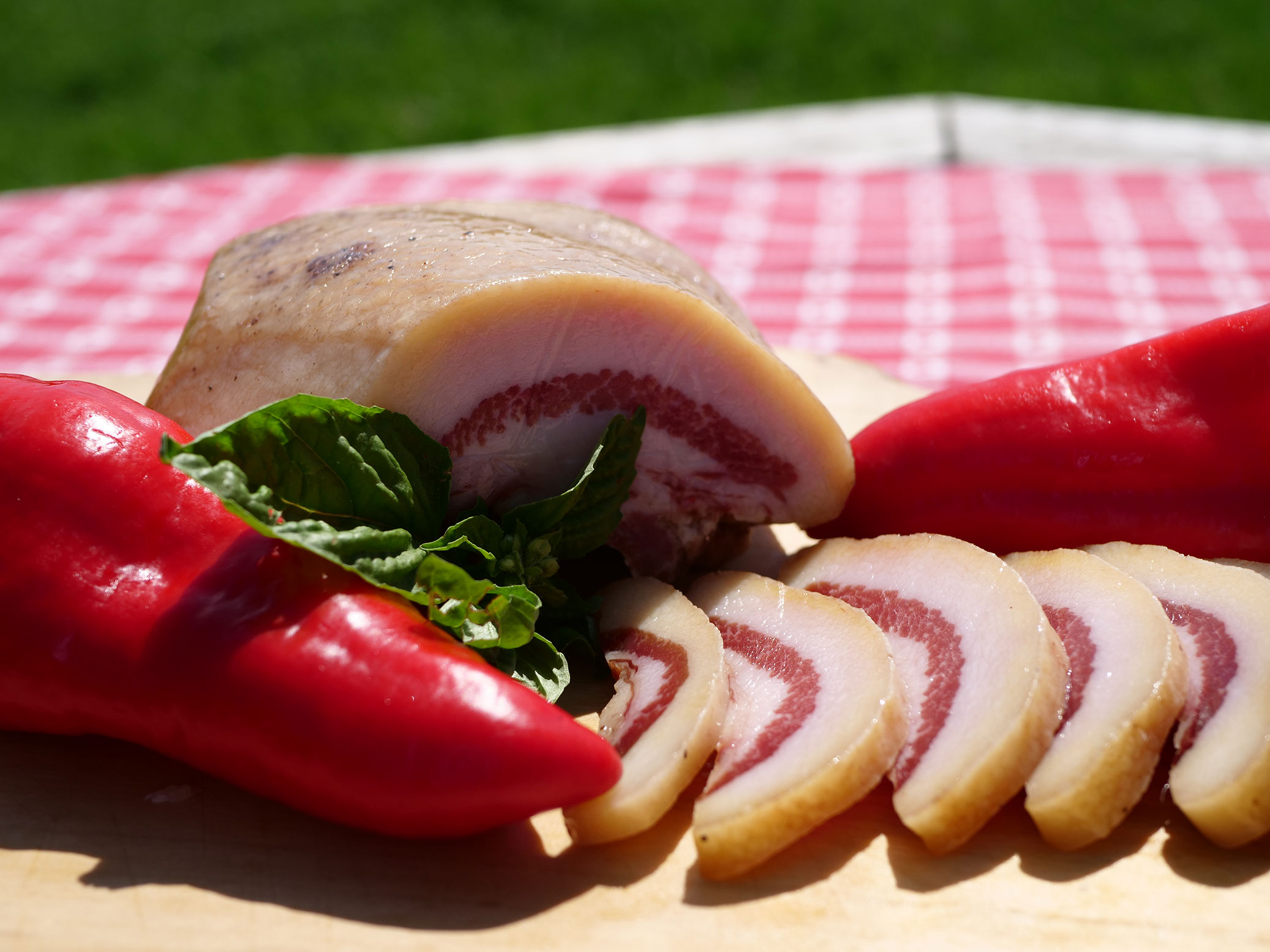 Pork cheek, with mild, mouthwatering flavour. Perfect ingredient in tomato pasta sauces (Amatriciana), or in a slow cooked braised meats. Exceptional when served thinly sliced with bread or polenta.