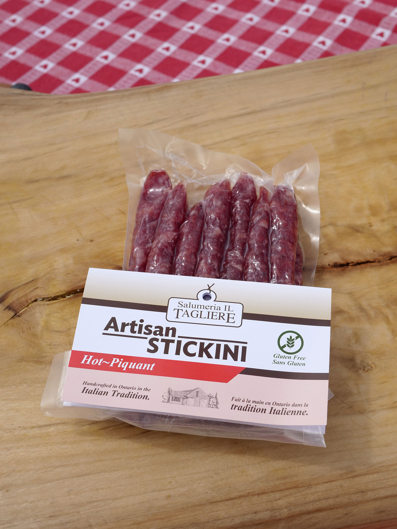 Our salame in a pepperette form. Tasteful, cured pepperettes in a variety of flavours. Work well servered in a caesar, enjoy on a board with nuts and cheese, or the perfect snack on their own. Spice level medium.