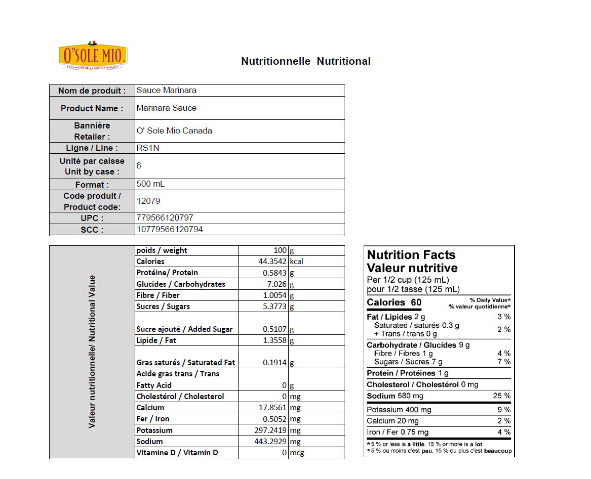 Italian tomato, Water, Onion, Extra virgin olive oil, Garlic, Salt, Sugar, Modified corn starch, Herbs, Spices.