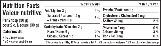 Yogurt (milk ingredients, modified milk ingredients, bacterial culture), sour cream (milk ingredients, bacterial culture, microbial enzymes), cucumber, canola oil, vinegar, garlic, sea salt, spices. Allergen: Milk